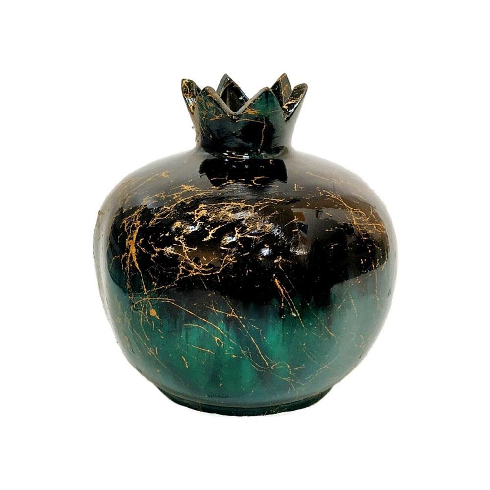 Decorandmore 3'lü Çini Nar Seti-Zümrüt yeşil/siyah-Mermer Desenli El yapımı-Orrjinal Kütahya Seramik