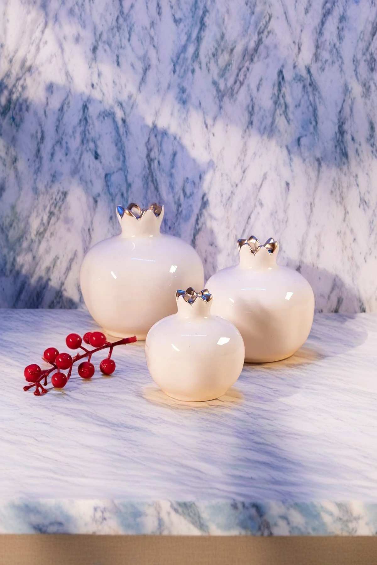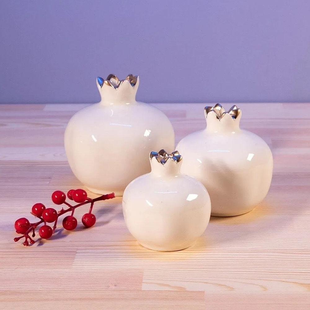 Decorandmore Dekoratif Seramik Obje Nar Seti Kırık Beyaz